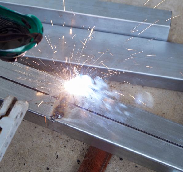 Osoba spawająca kawałek metalu.
